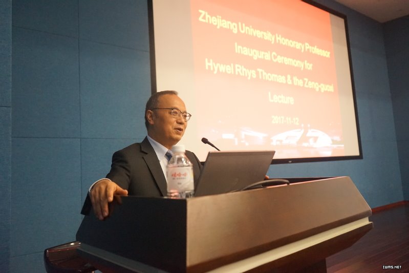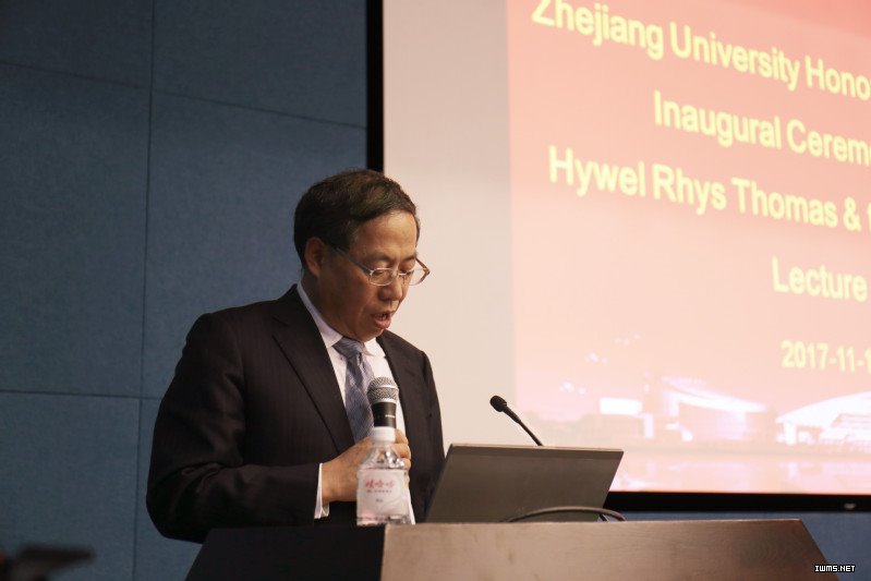 2017年11月12日,环境岩土工程和核废料处置研究的国际先驱、欧洲科学院院士、英国皇家学会院士、英国皇家工程院院士、英国卡迪夫大学副校长Hywel Rhys Thomas博士应邀来到浙江大学建筑工程学院,接受浙江大学名誉教授聘任并主讲第十一届浙江大学曾国熙讲座。校常务副校长宋永华教授、浙江大学曾国熙讲座基金会理事长陈云敏院士、校外事处副处长徐莹、建工学院党委书记兼副院长郭文刚、建工学院副院长朱斌教授、建工学院岩土所副所长詹良通教授以及200余名师生代表共同参加了此次聘任仪式。